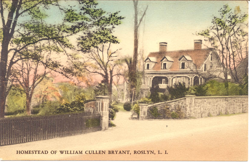 • William Cullen Bryant, long-time editor of the New York Evening Post and Roslyn resident, died in 1878. He was buried in Roslyn Cemetery. Two years prior to his death, Bryant was involved in the building of the “Reading Room,” a place for Roslyn residents to gather in the evenings. The “Reading Room” was renamed Bryant Library in 1878.